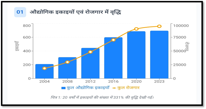 चित्र 2: औद्योगिक इकाइयों एवं रोजगार में वृद्धि