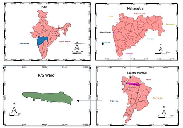 The ward selected for the study is R/S ward of Greater Mumbai. It includes areas like Kandivali, Dahanukar wadi, Charkop sector 1 and 2, and Akurli. It is one of the most populated, congested and polluted wards of the city. The latitudinal extension of the ward is from 19.20° N to 19.22° N and longitudinal extension is from 72.83° E to72.88° Eapproximately.